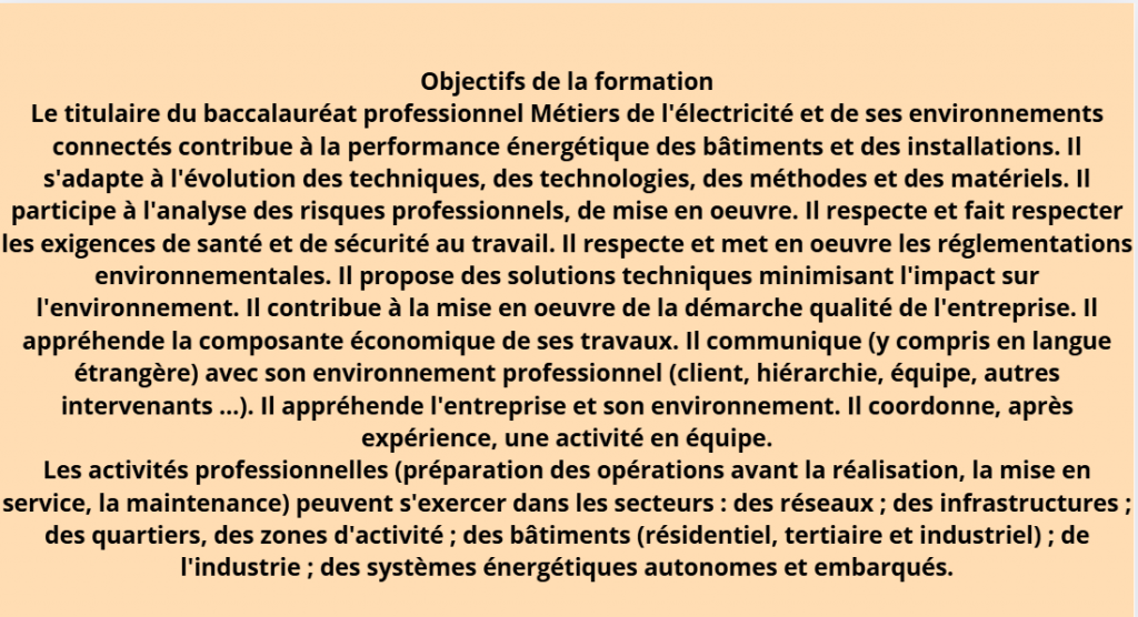 Bac pro Métiers de l’électricité et de ses environnements connectés(MELEC)