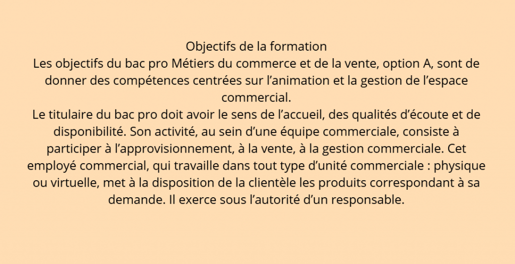 Bac pro Métiers du commerce et de la vente option A animation et gestion de l’espace commercial