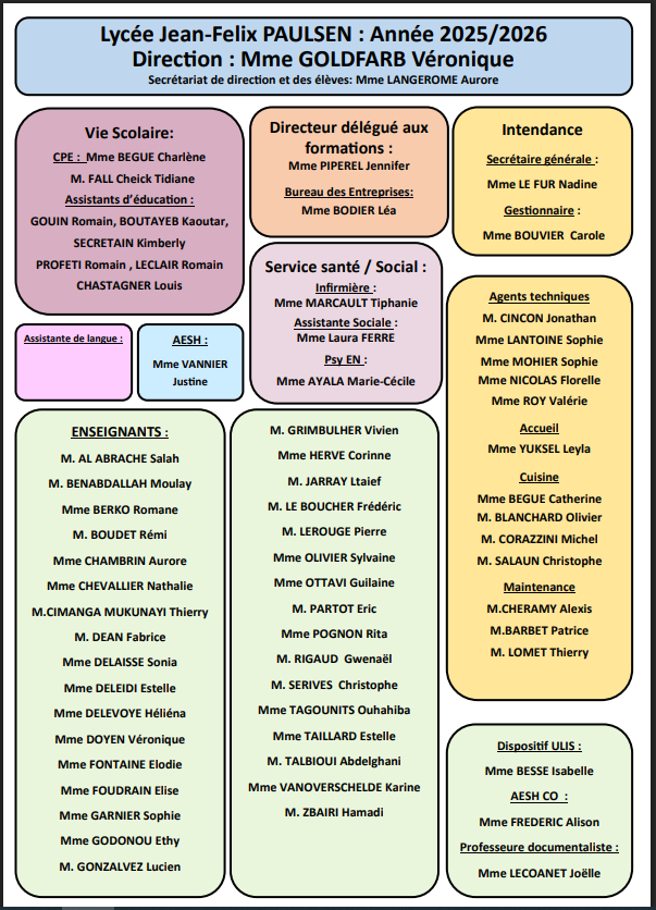 FONCTIONNEMENT ET ORGANISATION DE L’ ETABLISSEMENT